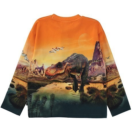 Джемпер Molo – это идеальный выбор для юных модников! Изготовленный из 100% натурального хлопка, он украшен очаровательными динозаврами, птеродактилями и другими динозаврами на фоне заката. Яркий оранжевый фон с зелеными и коричневыми акцентами создает игривое и в то же время уютное настроение. На фотографиях видны аккуратные детали, такие как логотип бренда на воротнике и мягкая текстура ткани. Качество от датского бренда и внимание к деталям делают этот джемпер отличным выбором для вашего ребенка!