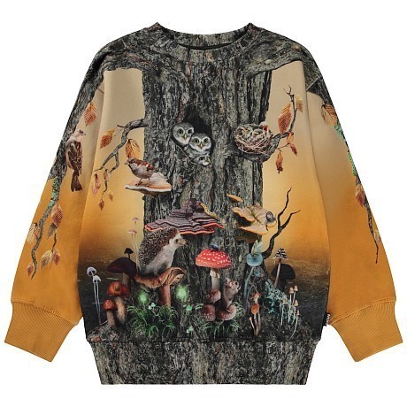 Джемпер Molo – это идеальный выбор для вашего юного лесника! Изготовленный из 100% натурального хлопка, он украшен очаровательным принтом с животными, грибами и лесными деталями. На передней части видны милые совы, птицы, грибы и яркие осенние листья, а на спине – дерево с гнездом и другими лесными деталями. Нежная текстура ткани и удобная посадка делают этот джемпер отличным выбором для вашего ребенка!