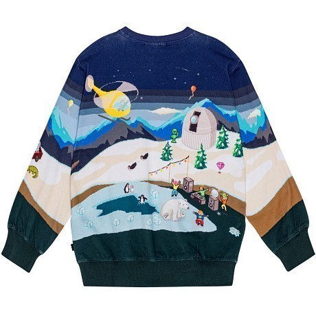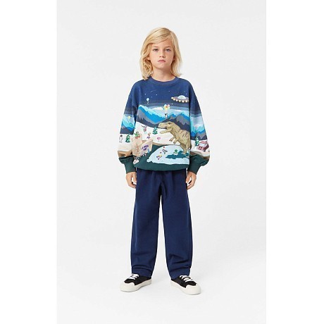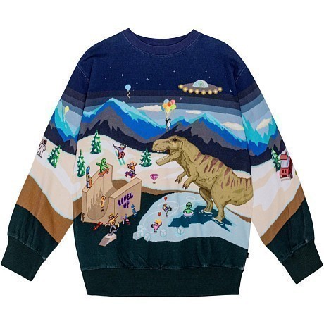 Джемпер Molo – это идеальный выбор для детей 7 лет! Изготовленный из 100% натурального хлопка, он украшен очаровательным принтом с динозавром и снежным пейзажем. Темно-синий цвет с яркими деталями создает игривое и в то же время уютное настроение. На фотографиях видна аккуратная окантовка по краю и мягкая текстура ткани. Качество от бренда из Дании и внимание к деталям делают этот джемпер отличным выбором для вашего ребенка!