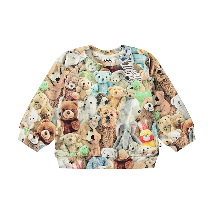 Джемпер Molo – это идеальный выбор для мальчиков! Изготовленный из 100% натурального хлопка, он украшен очаровательными изображениями различных игрушек, включая медведей, зайцев, птиц и других милых персонажей. Нежная текстура ткани и яркие цвета создают игривое и в то же время уютное настроение. На фотографиях видны аккуратные детали, такие как мягкая окантовка по краю и удобная застежка на кнопки. Качество от бренда из Дании и внимание к деталям делают этот джемпер отличным выбором для вашего малыша!