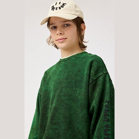 Джемпер Molo темно-зеленого цвета – идеальный вариант для мальчиков от 8 до 14 лет! Изготовлен из 100% натурального хлопка, он обеспечивает комфорт и мягкость при ношении. Джемпер с круглым вырезом горловины и длинными рукавами идеально подойдет для теплой погоды. На фото видна аккуратная окантовка по краю рукавов и низу изделия, а также стильный принт на рукавах. Качество от датского бренда Molo и внимание к деталям делают этот джемпер отличным выбором для вашего ребенка!