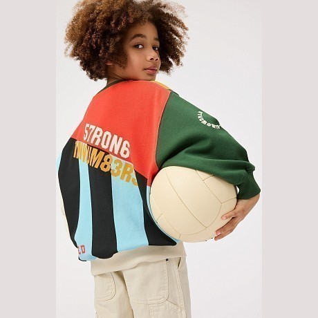 Джемпер Molo темно-зеленый с принтом Forza Della Natura – это идеальный выбор для юных модников! Изготовлен из 100% натурального хлопка, он украшен ярким принтом с надписью "United" и контрастными полосами. Нежная текстура ткани и удобная посадка делают этот джемпер идеальным для детей в возрасте от 10 до 12 лет. На фотографиях видна аккуратная окантовка по краю рукавов и мягкое воротничок. Качество от датского бренда и внимание к деталям делают эту модель отличным выбором для вашего ребенка!