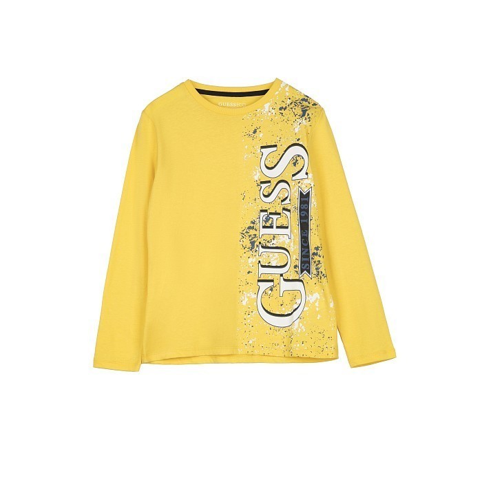 Фуфайка Guess – это идеальный выбор для мальчиков! Изготовленная из 100% хлопка, она украшена крупным принтом Guess с эффектом разбрызганной краски. Фуфайка с круглым вырезом горловины и длинными рукавами создает стильный и комфортный образ. На фотографиях видна аккуратная окантовка по краю и мягкая текстура ткани. Качество от бренда из США и внимание к деталям делают эту фуфайку отличным выбором для вашего мальчика!