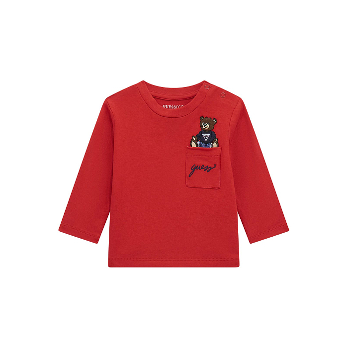 Фуфайка Guess – это идеальный выбор для мальчиков! Изготовленная из 100% хлопка, она украшена очаровательным принтом медведя в кармане. Красный цвет создает яркий и стильный образ, а мягкая ткань обеспечивает комфорт и уют. На фотографиях видна аккуратная вышивка медведя в кармане и удобная застежка на кнопках. Качество от бренда из США и внимание к деталям делают эту фуфайку отличным выбором для вашего малыша!