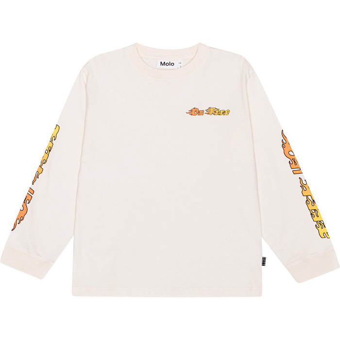 Футболка с длинным рукавом Molo – это идеальный выбор для вашего юного модника! Изготовленная из 100% натурального хлопка, она украшена огненными орнаментами на рукавах. Стильный дизайн и высокое качество от датского бренда Molo делают эту футболку отличным аксессуаром для вашего ребенка. На фотографиях видны огненные орнаменты на рукавах и мягкое крашение края рукавов. Качество ткани и внимание к деталям делают эту футболку идеальным выбором для вашего мальчика!