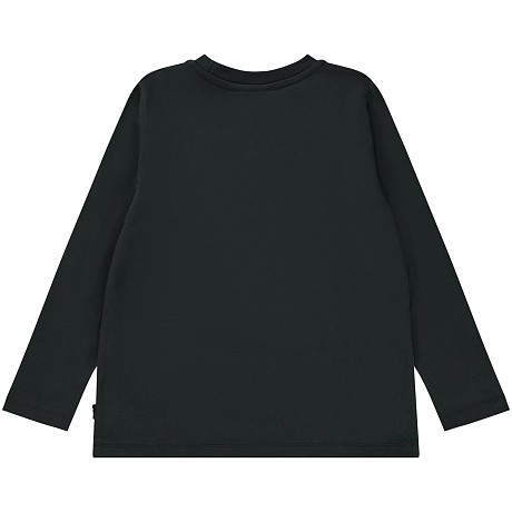 Футболка Molo с длинным рукавом – это идеальный выбор для юных модников! Изготовленная из 100% натурального хлопка, она украшена ярким принтом с динозавром, планетами и звездами на черном фоне. Нежная текстура ткани и удобная посадка делают эту футболку отличным выбором для вашего ребенка. На фотографиях видна аккуратная окантовка по краю и мягкая текстура ткани. Качество от бренда из Дании и внимание к деталям делают эту футболку стильным и комфортным аксессуаром для вашего малыша!