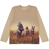Футболка с длинным рукавом для мальчиков Molo – это идеальный выбор для вашего ребенка! Изготовленная из 100% натурального хлопка, она украшена очаровательным принтом медведей на фоне золотистой травы. Мягкая и приятная на ощупь ткань создает комфорт и уют для вашего малыша. На фотографиях видна аккуратная окантовка по краю и мягкая текстура ткани. Качество от бренда из Дании и внимание к деталям делают эту футболку отличным выбором для вашего малыша!