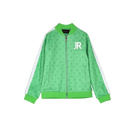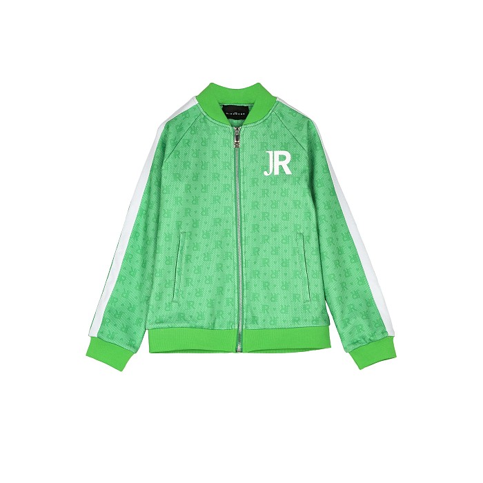 • 🎨 Дизайн: зеленый фон с белыми вставками, белые полосы на рукавах и воротнике, принт с логотипом "JR"