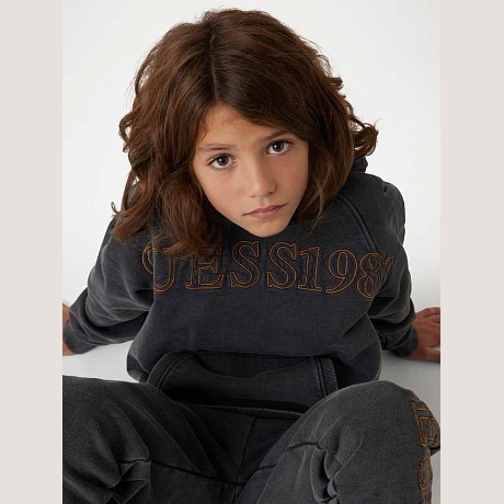 Толстовка Guess – это идеальный выбор для мальчиков! Изготовленная из 100% хлопка, она украшена вышитым логотипом "GUESS198" в золотистом цвете. Черный цвет подчеркивает элегантность и универсальность модели. На фотографиях видна удобная посадка с эластичными манжетами и карманами спереди. Качество от бренда Guess и внимание к деталям делают эту толстовку отличным выбором для вашего подростка!