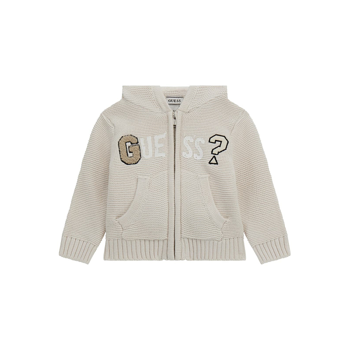 Толстовка Guess – это идеальный выбор для мальчиков! Изготовленная из 100% хлопка, она украшена крупным логотипом Guess и вопросительным знаком. Капюшон с двумя пушистыми помпонами делает эту толстовку еще более уютной и привлекательной. На фотографиях видна аккуратная текстура ткани, удобная застежка на молнии и мягкая подкладка. Качество от американского бренда Guess и внимание к деталям делают эту толстовку отличным выбором для вашего ребенка!