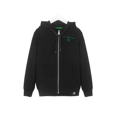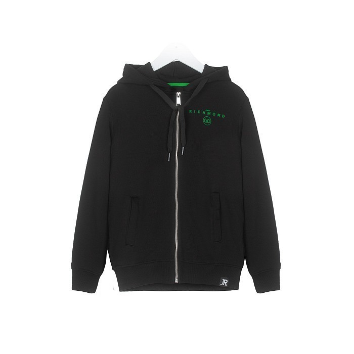 Толстовка John Richmond – это идеальный выбор для вашего юного модника! Изготовленная из 100% хлопка, она дополнена зеленым принтом с логотипом бренда на капюшоне и рукавах. Капюшон с регулируемыми шнурками обеспечивает комфорт и тепло. На фотографиях видны карманы спереди, удобная застежка на молнии и эластичные манжеты на рукавах. Толстовка John Richmond – отличный выбор для стильного и комфортного гардероба вашего ребенка!