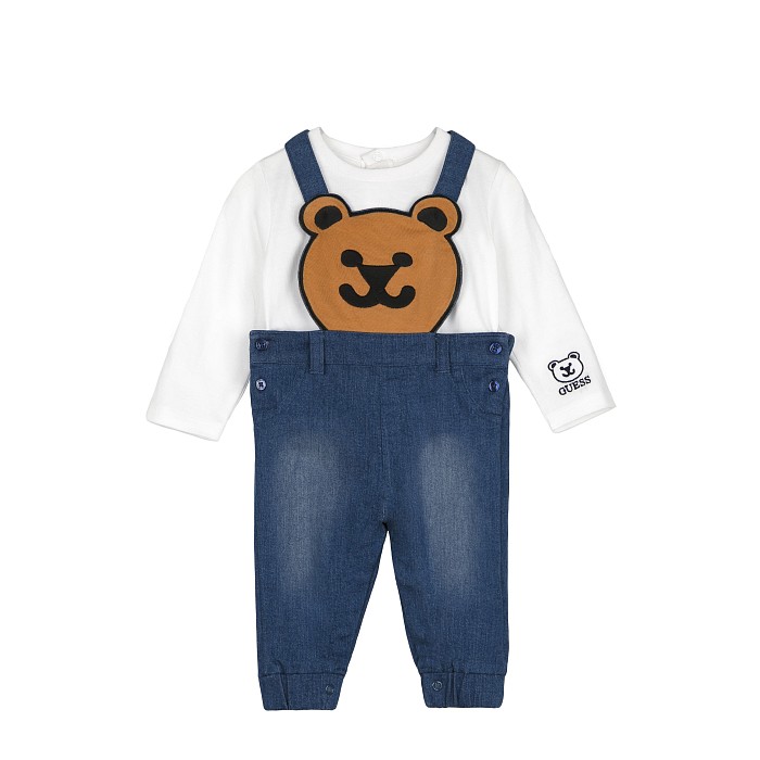 Комплект Guess – это идеальный выбор для мальчиков! Фуфайка и комбинезон выполнены из высококачественного хлопка с добавлением эластана, что делает их идеальными для новорожденных и младенцев. Белый цвет с принтом медведя на фуфайке и логотипом Guess на рукаве делают этот комплект не только удобным, но и очень стильным. Быстрая доставка СДЭК по всей России.