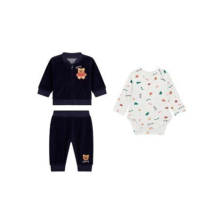 Комплект тр. (кардиган+боди+брюки) для мальчиков Guess – это идеальный выбор для вашего ребенка! Изготовленный из 80% хлопка и 20% полиэстера, он обеспечивает мягкость и комфорт. Боди украшено милыми новогодними мотивами, а кардиган и брюки дополнены удобными карманами и приятной посадкой. Качество от бренда Guess и внимание к деталям делают этот комплект отличным выбором для вашего малыша!