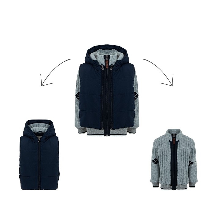 Набор (жилет утепленный текстильный+кардиган) темно-синий для мальчиков