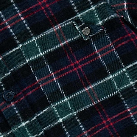 - 🎨 Дизайн: пледовый принт в темно-зеленых тонах