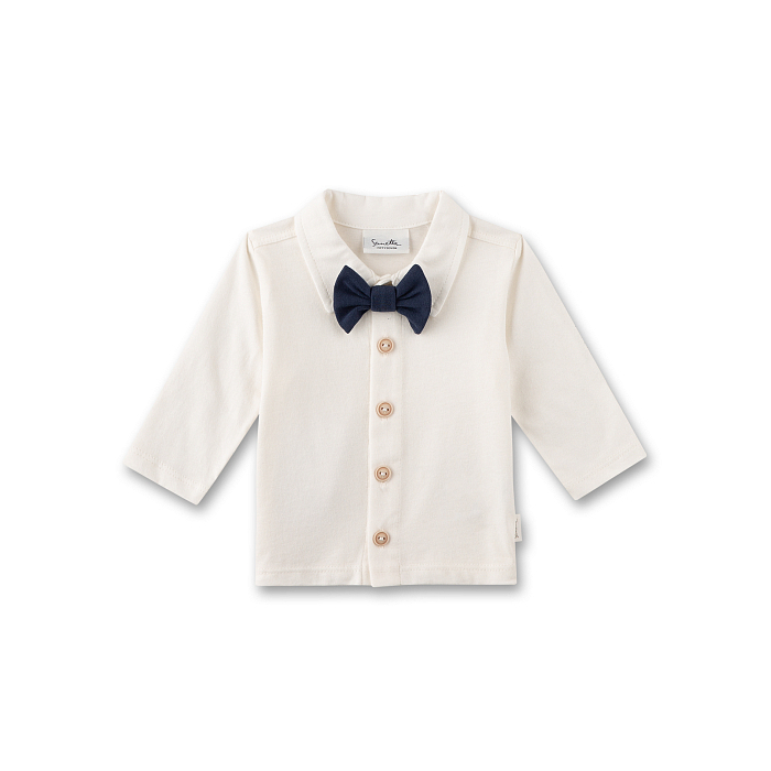 Рубашка Sanetta Fiftyseven – идеальный выбор для маленького модника! Изготовлена из 100% натурального хлопка, она дополнена элегантным бантом и пуговицами. Классический дизайн и высокое качество делают эту рубашку отличным аксессуаром для вашего ребенка. На фотографиях видна аккуратная отделка воротника и пуговицы, а также элегантный бантик на груди. Рубашка подойдет для новорожденных и младенцев.