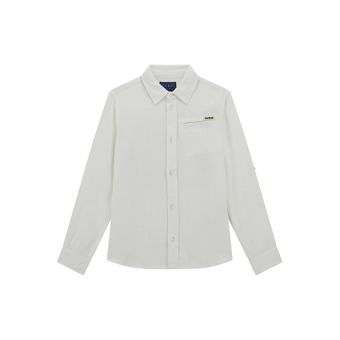 Рубашка Guess – это идеальный выбор для юных модников! Изготовленная из вискозы и льна, она обеспечивает комфорт и стиль. Белая верхняя одежда от американского бренда Guess подчеркивает элегантность и неповторимый образ вашего ребенка. На фото видна аккуратная белая рубашка с классическим воротником и карманом на груди. Логотип Guess на груди и на рукаве подчеркивают премиум качество бренда. Рубашка подходит для детей от 7 до 16 лет, обеспечивая удобную посадку и комфорт.