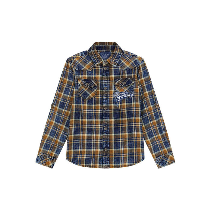 Рубашка Guess – это идеальный выбор для мальчиков от 7 до 16 лет! Изготовленная из 100% хлопка, она украшена ярким клетчатым принтом в темно-синем цвете. Рубашка с двумя нагрудными карманами и логотипом Guess на груди создает неповторимый стиль и уверенность. На фотографиях видна аккуратная клетка с контрастными линиями и мягкая текстура ткани. Качество от бренда из США и внимание к деталям делают эту рубашку отличным выбором для вашего подростка!