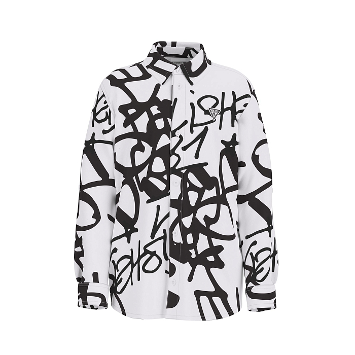 Рубашка Guess – это идеальный выбор для мальчиков! Изготовлена из 97% хлопка и эластана, она украшена стильным граффити. Белая основа с черными граффити-рисунками создает модный и неповторимый образ. На фотографиях видна аккуратная черная окантовка по краю и мягкая текстура ткани. Качество от американского бренда и внимание к деталям делают эту рубашку отличным выбором для вашего подростка!