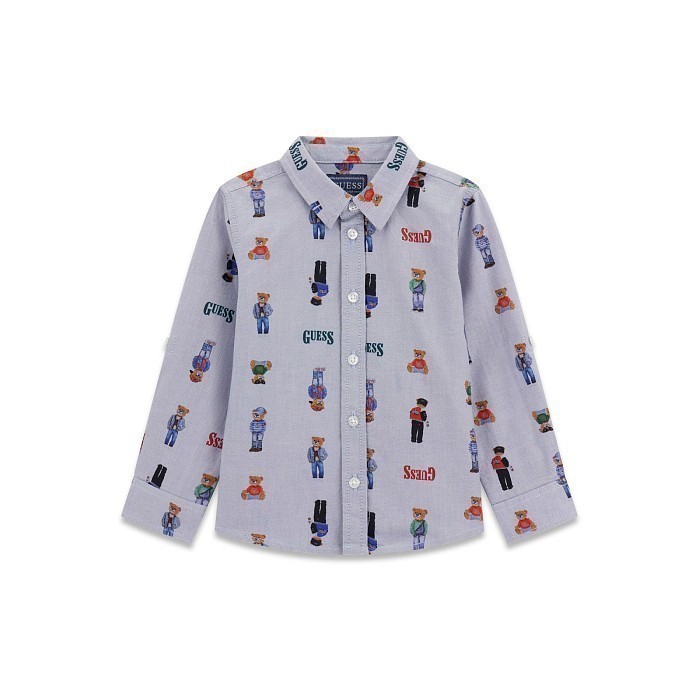 Серая рубашка Guess для мальчиков с принтом медведей и логотипом