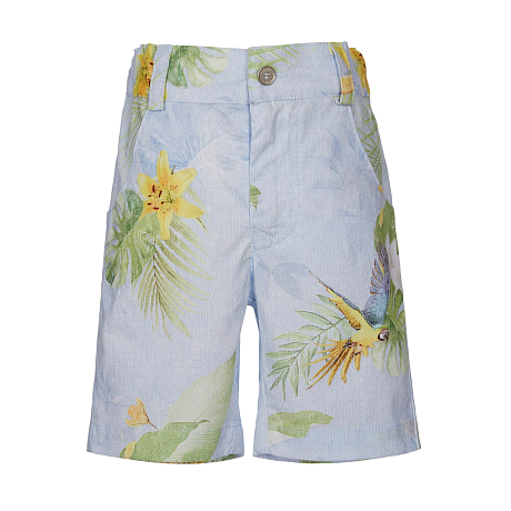 Бермуды для мальчиков Lapin House – это идеальный выбор для теплых дней! Изготовленные из 97% хлопка и 3% лайкры, они украшены тропическим принтом с яркими цветами и экзотическими птицами на светло-голубом фоне. Нежная ткань с мягкими цветами и изящными птицами создает легкое и приятное настроение. На фотографии видна аккуратная застежка на пуговицу и удобная посадка. Качество от бренда из Греции и внимание к деталям делают эти бермуды отличным выбором для вашего ребенка!