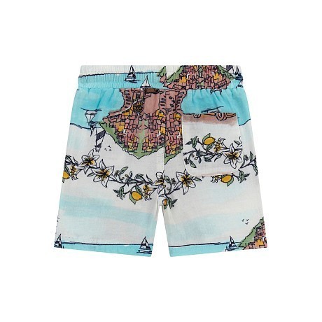 Шорты Guess – это идеальный выбор для стильных мальчиков! Изготовленные из 100% хлопка, они украшены ярким принтом городского пейзажа с цветами и элементами уличной архитектуры. На передней стороне видна удобная эластичная резинка и карман с логотипом Guess. На задней стороне – небольшой карман на молнии. Качество от бренда из США и внимание к деталям делают эти шорты отличным выбором для вашего ребенка!