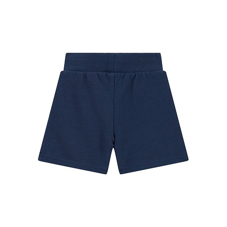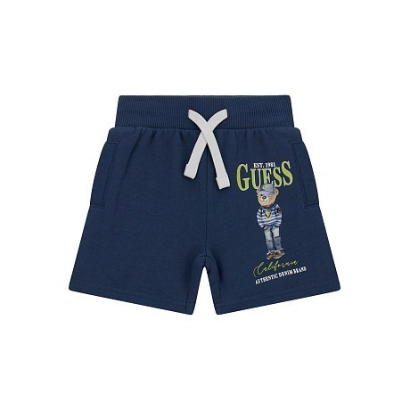 Шорты Guess – это идеальный выбор для активных мальчиков! Изготовленные из 100% хлопка, они украшены стильным принтом с медведем в кепке и кроссовках. Темно-синий цвет подчеркивает модный образ вашего ребенка. На фотографиях видна удобная эластичная резинка пояса и мягкая текстура ткани. Качество от американского бренда Guess и внимание к деталям делают эти шорты отличным выбором для вашего мальчика!