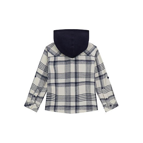 Рубашка Guess – это идеальный выбор для мальчиков от 3 до 6 лет! Изготовленная из 100% хлопка, она украшена элегантной клетчатой расцветкой в молочном цвете. Капюшон синего цвета и удобные карманы с клапанами создают стильный и практичный образ. На фотографиях видна аккуратная клетчатая текстура ткани, удобная застежка на пуговицы и мягкая подкладка. Качество от бренда из США и внимание к деталям делают эту рубашку отличным выбором для вашего ребенка!