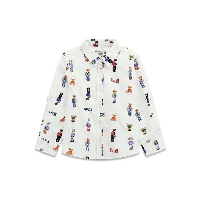 Белая рубашка для мальчиков Guess с принтом медведей и логотипа