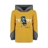 Толстовка Lapin House – это идеальный выбор для активных мальчиков! Изготовленная из 95% хлопка и 5% лайкры, она украшена очаровательным принтом хоккеиста и надписью "Champs". Яркий желтый цвет с контрастной серой вставкой на капюшоне и рукавах создает стильный и модный образ. На фотографиях видна аккуратная серая окантовка по краю капюшона и рукавов, а также мягкая текстура ткани. Качество от бренда из Греции и внимание к деталям делают эту толстовку отличным выбором для вашего мальчика!