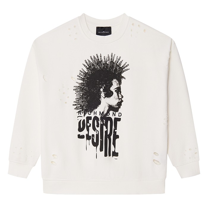 Толстовка John Richmond – идеальный выбор для юных модников! Изготовлена из 100% хлопка, она украшена ярким принтом с надписью "Desire" и эффектом потертости. Эта модель подчеркнет индивидуальность вашего ребенка и добавит ему уверенности. На фотографиях видна аккуратная потертость по краю и мягкая текстура ткани. Качество от бренда John Richmond и внимание к деталям делают эту толстовку отличным выбором для вашего мальчика!