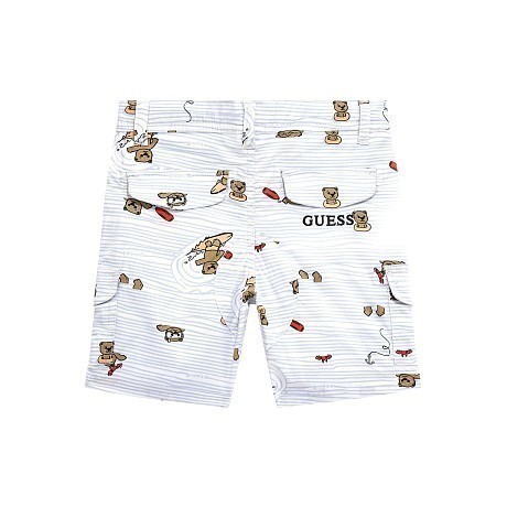 Шорты Guess – это идеальный выбор для юных модников! Изготовленные из 97% хлопка и 3% эластана, они украшены очаровательными медвежатами, морскими животными и морскими элементами на светло-голубом фоне. Мягкая и дышащая ткань обеспечивает комфорт и удобство. На фотографиях видны аккуратные карманы с логотипом Guess и милые медвежата, которые делают эти шорты настоящим хитом сезона. Качество от бренда из США и внимание к деталям делают эту модель отличным выбором для вашего ребенка!
