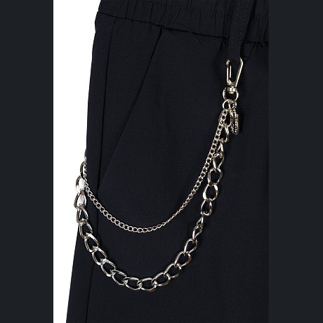 - 🎨 Дизайн: темно-синий цвет, эластичная талия, удобный шнурок, цепочка на передней части