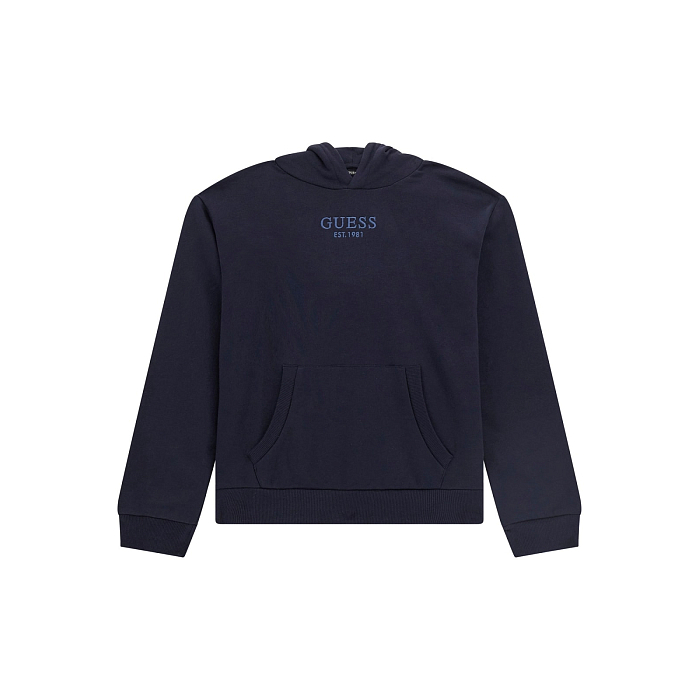 Толстовка Guess темно-синего цвета – идеальный выбор для вашего подростка! Изготовлена из 100% хлопка, она обеспечивает комфорт и теплоту. Ткань плотная, приятная на ощупь, идеально подходит для холодной погоды. На груди виден небольшой логотип Guess, который добавляет уникальности и стиля. Толстовка с капюшоном, удобные карманы спереди, эластичные манжеты и низ. Удобная посадка подходит для детей от 7 до 14 лет.