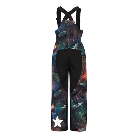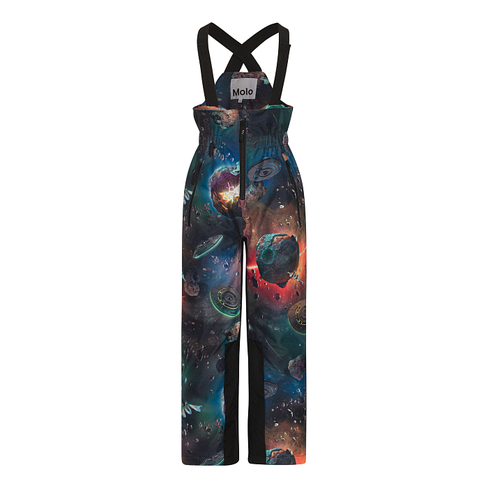 Полукомбинезон Molo – это идеальный выбор для юных космических путешественников! Изготовленный из 55% полиэстера, 45% полиэстера переработанного + наполнения 83% полиэстера переработанного, 17% полиэстера + подкладки 100% полиэстера переработанного, он украшен ярким космическим принтом с планетами, звездами и космическими кораблями на темно-синем фоне. Нежная ткань с контрастными деталями делает этот полукомбинезон не только стильным, но и комфортным для вашего ребенка. На фотографиях видны аккуратные черные бретели и эластичная резинка по талии. Качество от датского бренда Molo и внимание к деталям делают эту модель отличным выбором для вашего мальчика!