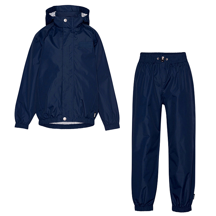 Комплект (куртка+брюки) Molo - это идеальный выбор для активных прогулок! Изготовленный из прочного 100% полиэстера, этот комплект обеспечивает отличную защиту от ветра и дождя. Куртка с капюшоном и эластичными манжетами на рукавах и брюках обеспечивает идеальную посадку и комфорт. Брюки с эластичной талией и карманами на поясе создают стильный и удобный образ. На фотографиях видна аккуратная белая окантовка по краю куртки и брюк, а также белые кнопки на куртке. Качество от датского бренда Molo делает этот комплект отличным выбором для вашего мальчика!