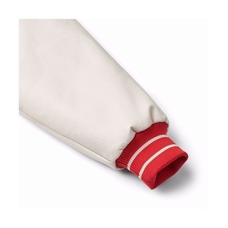 - 🎨 Дизайн: красный фон, белые рукава, надпись на груди, белые контрастные линии