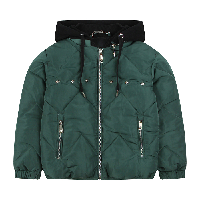 Текстильная куртка Richmond – идеальный выбор для детей от 10 до 14 лет! Изготовлена из 100% полиэстера, с подкладкой и наполнителем из полиэстера. Куртка с капюшоном и карманами на молнии, украшенная металлическими звездочками на передней части. Нежный зеленый цвет придает куртке легкость и стиль. Качество от бренда Richmond делает эту куртку отличным выбором для вашего ребенка!
