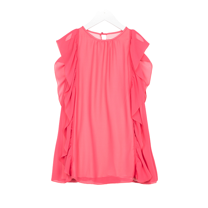 - 👗 Дизайн: розовый цвет, элегантные оборки на рукавах и спинке