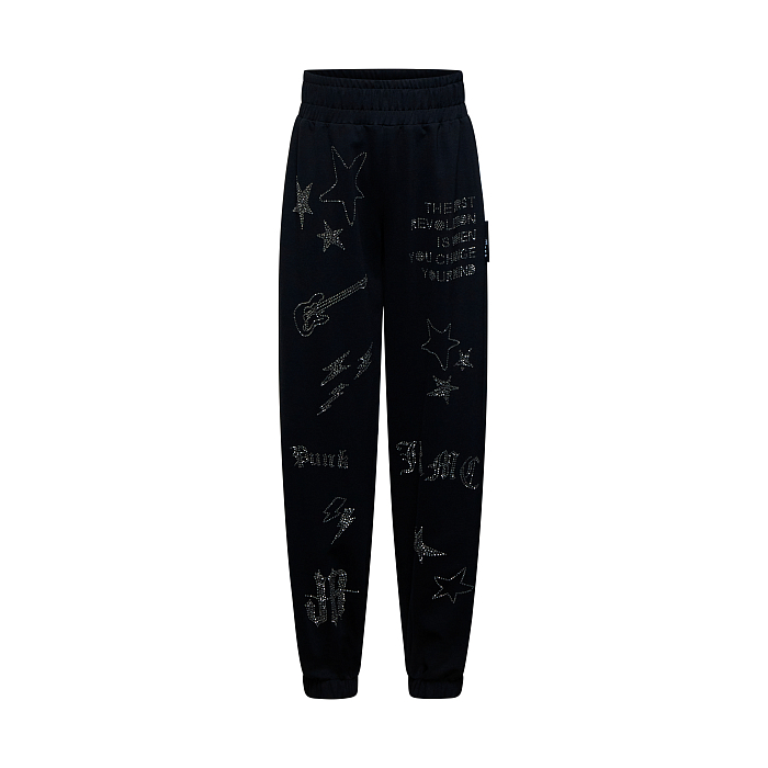 Брюки трикотажные для девочек John Richmond с принтом звезд и гитар черного цвета - доставка СДЭК по всей России - RGA25189PA/М/25-02