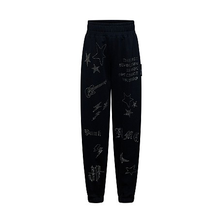 Брюки трикотажные для девочек John Richmond с принтом звезд и гитар черного цвета - доставка СДЭК по всей России - RGA25189PA/М/25-02