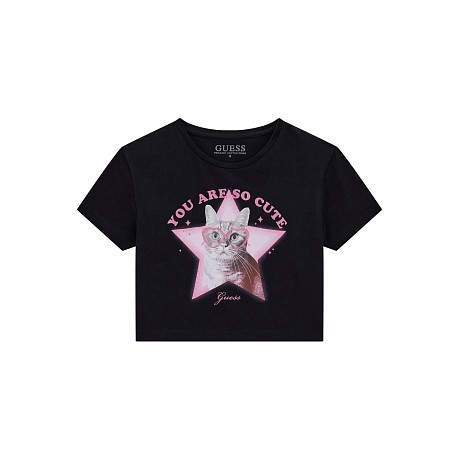 Футболка Guess – это отличный выбор для юных модниц! Изготовлена из качественного хлопка с добавлением эластана, она украшена забавным принтом кота с звездой на черном фоне. Нежная текстура ткани обеспечивает комфорт и удобство при носке. На фотографиях видна аккуратная черная основа с ярким рисунком. Качество от американского бренда Guess делает эту футболку отличным выбором для вашего ребенка!