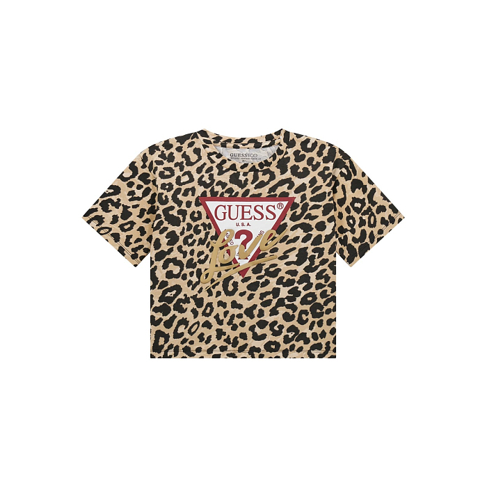 Футболка Guess – это идеальный выбор для стильных девочек! Изготовленная из комбинации 95% хлопка и эластана, она украшена очаровательным леопардовым принтом. Футболка идеально подходит для девочек от 2 до 14 лет, обеспечивая комфорт и стиль. На фотографиях видна аккуратная контрастная окантовка по краю и мягкая текстура ткани. Качество от американского бренда Guess делает эту футболку отличным выбором для вашего ребенка!