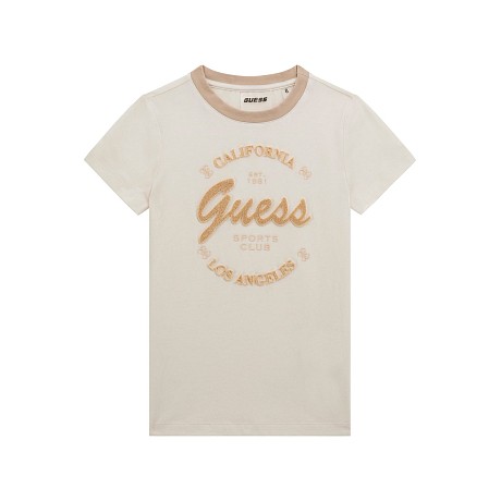 Футболка Guess – идеальный выбор для девочек! Изготовлена из качественного хлопка с добавлением эластана, обеспечивает комфортную посадку. На футболке изображены символы Los Angeles и California, что делает ее не только удобной, но и модной. Нежная белая основа с золотистыми надписями создает неповторимый стильный образ. На фотографиях видна аккуратная окантовка по краю и мягкая текстура ткани. Качество от американского бренда Guess делает эту футболку отличным выбором для вашего ребенка!