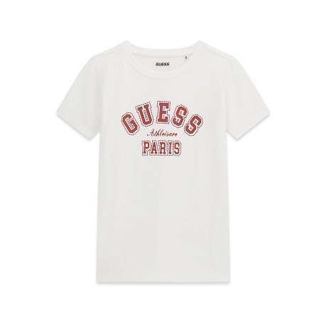 Футболка Guess – это идеальный выбор для девочек! Изготовлена из качественного хлопка (95% хлопок, 5% эластан), она украшена красочным принтом Guess Paris. Футболка идеально подойдет для повседневной носки и стиля. На фотографиях видна аккуратная красная надпись "Guess Paris" и эластичный воротничок. Качество от американского бренда Guess делает эту футболку отличным выбором для вашего ребенка!