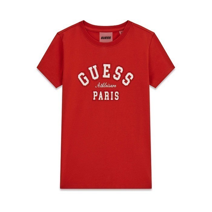 Красная футболка Guess – это идеальный выбор для девочек! Изготовленная из высококачественного хлопка с добавлением эластана, она обеспечивает мягкость и комфорт. Футболка украшена крупным белым логотипом Guess на груди, который подчеркивает бренд и добавляет модного шарма. Нежная красная основа с белым принтом делает эту футболку не только удобной, но и элегантной. На фотографиях видна аккуратная белая окантовка по краю и мягкая текстура ткани. Качество от американского бренда Guess гарантирует долгий срок службы и комфортное ношение.