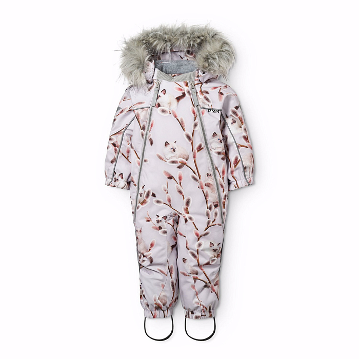Комбинезон Molo – это идеальный выбор для девочек! Изготовленный из 55% полиэстера и 45% переработанного полиэстера, он украшен очаровательными кошками и ветками на светло-розовом фоне. Нежная ткань с яркими принтами создает игривое и в то же время уютное настроение. На фотографиях видна аккуратная серая окантовка по краю и мягкая текстура ткани. Качество от бренда из Дании и внимание к деталям делают этот комбинезон отличным выбором для вашего малыша!