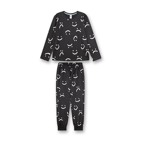 Пижама Sanetta – это идеальный выбор для девочек! Изготовленная из 100% хлопка, она украшена очаровательными улыбками на темно-сером фоне. Нежная текстура ткани и удобная посадка делают эту пижаму отличным выбором для вашего ребенка. На фотографиях видна аккуратная белая контрастная окантовка по краю и мягкая текстура ткани. Качество от бренда Sanetta обеспечивает комфорт и удобство для вашего ребенка!