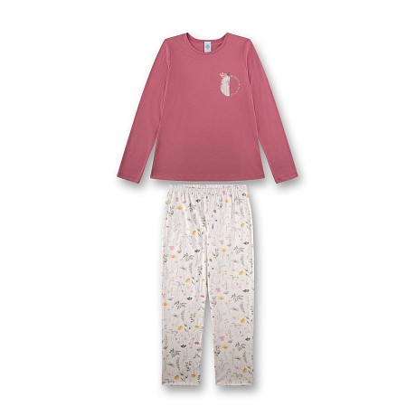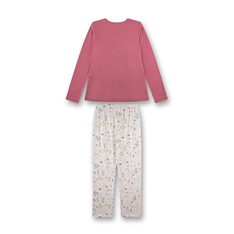 Пижама Sanetta – это идеальный выбор для девочек! Изготовленная из 50% хлопка и 50% модала, она украшена нежным цветочным принтом. Вишневый тон основы с изысканными цветами и листьями создает нежное и уютное настроение. На фотографиях видна аккуратная резинка по низу брючин и мягкая текстура ткани. Качество от бренда Sanetta делает эту пижаму отличным выбором для вашего ребенка!