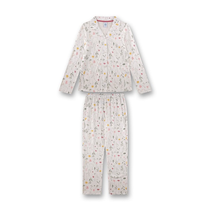 Пижама Sanetta – это идеальный выбор для девочек! Изготовленная из 50% хлопка и 50% модала, она украшена нежным цветочным принтом. Мягкая и дышащая ткань обеспечивает комфортную посадку. На фотографиях видна аккуратная резинка на рукавах и поясах, а также нежные цветы разной формы и оттенка на молочном фоне. Качество от бренда Sanetta делает эту пижаму отличным выбором для вашего ребенка!